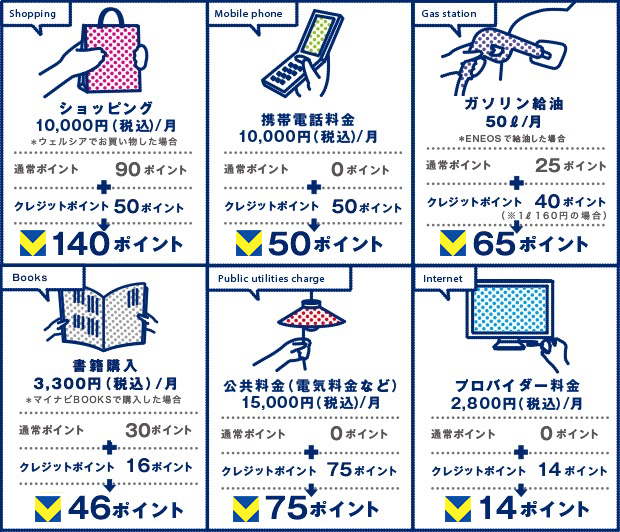 - ※提携先によってポイントの対象となるご利用額は、110円(税込)または220円(税込)の場合がございます。
