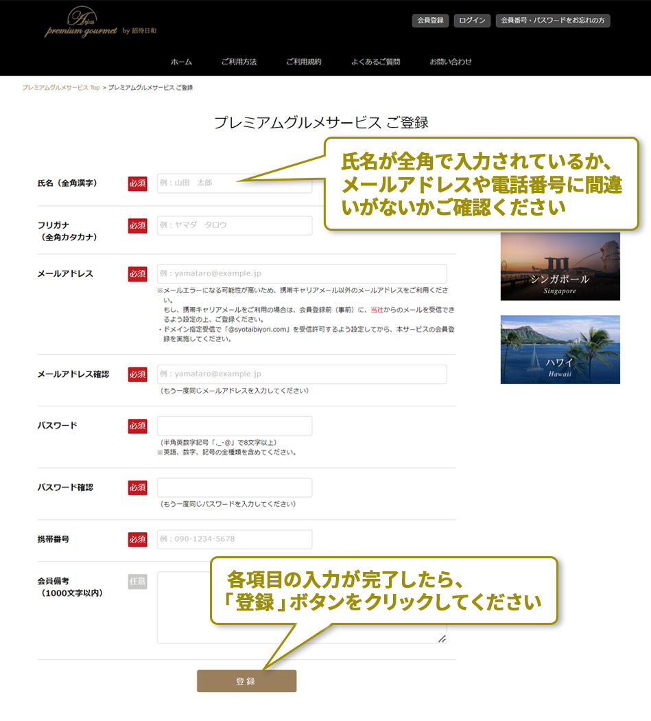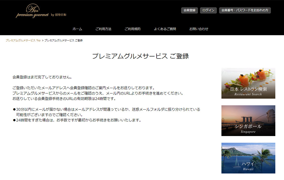 アプラス プレミアム グルメ サービス専用WEBサイトの会員登録は、以下の手順でお進めください。