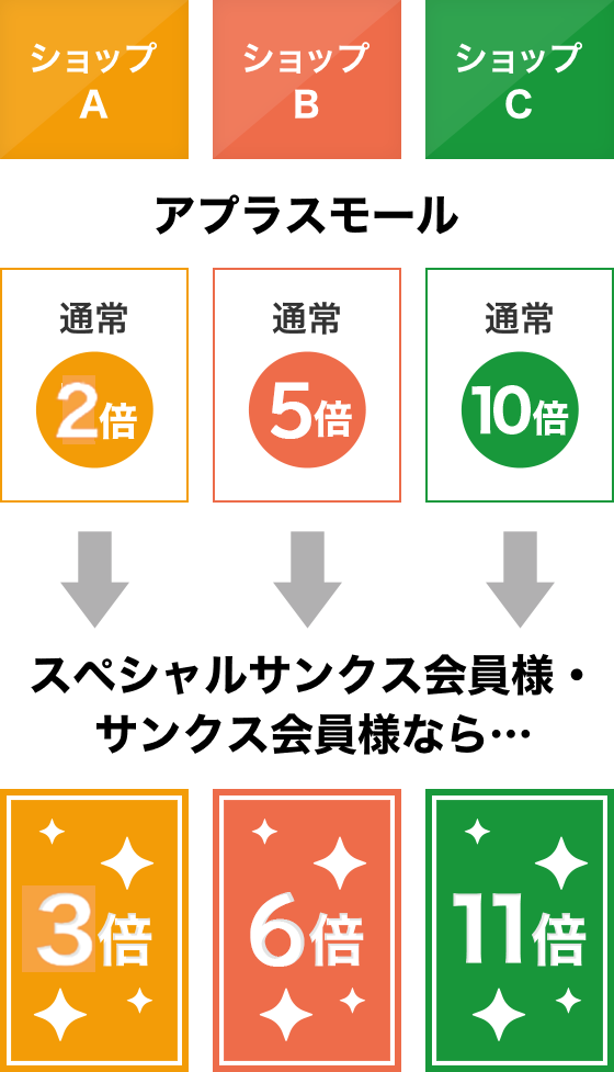 アプラスサンクスプログラム適用期間中にアプラスモールを経由してカードショッピングをご利用いただいた場合、ポイント倍率を1倍分加算します。