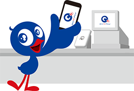 QUICPayマークのあるお店で、専用端末にカードや携帯電話をかざすだけでお支払いができる、サインや事前のチャージがいらない電子マネーです。