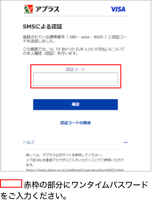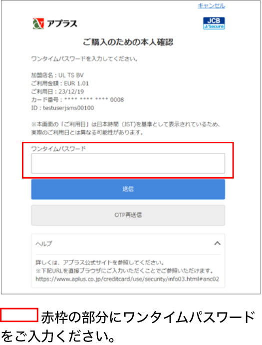 ご入力いただいたワンタイムパスワードで本人認証が行われ、お支払い手続きが完了します。