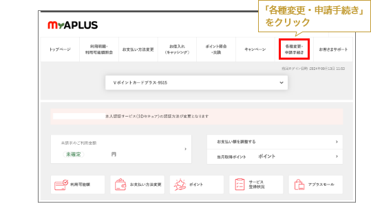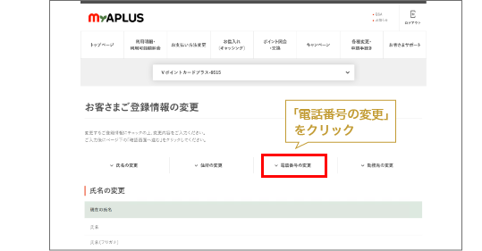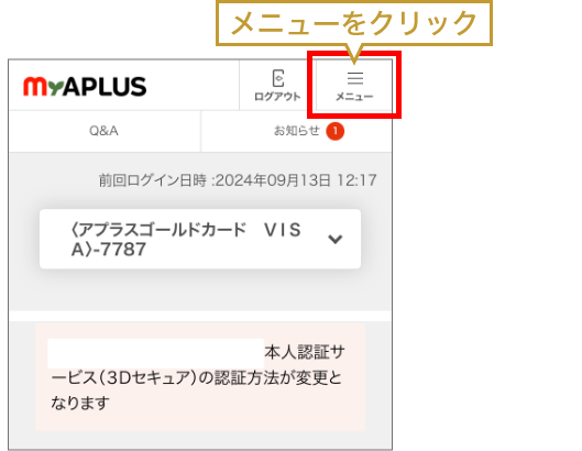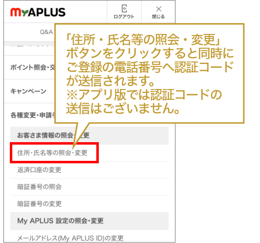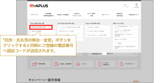 携帯電話番号のご登録状況は、My APLUSにログインしていただき、以下の手順でご確認いただけます。