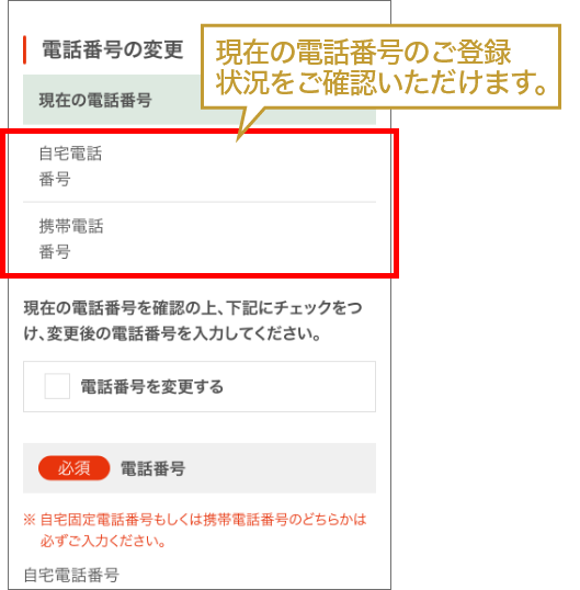 携帯電話番号が未登録で固定電話番号のご登録があるお客さま:「固定電話番号」へ自動音声で認証コードをご案内します。