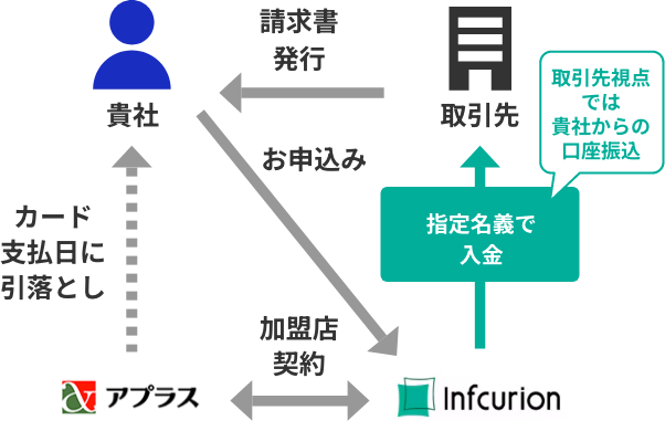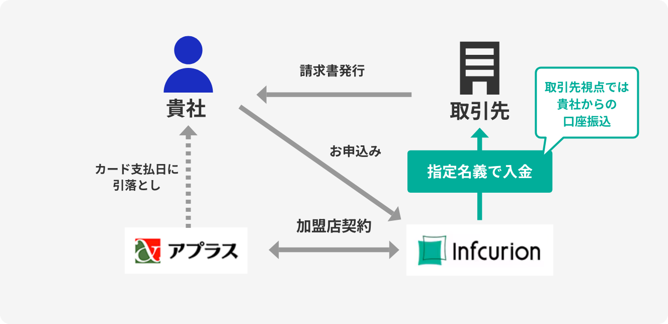 - ※アプラスは、インフキュリオン社の取次パートナーとして、カード会員様に「請求書カード払い」をご紹介いたします。